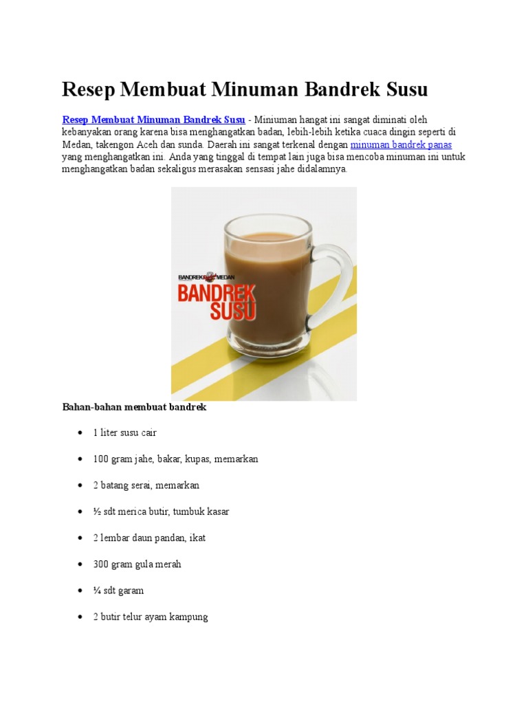 Cara membuat bandrek adalah resep minuman hangat yang berasal dari khas sunda. Masukkan garam sesuai dengan selera dan aduk kembali minuman bandrek dalam panci. Pengen minuman yang menghangatkan tapi bikin nya yang praktis dan gak pake lama.yaitu dari seduhan jahe merah instan yang sudah mengandung gula aren dan habats ditambah kelapa muda plus bumbu rempah lain yang selalu ada di dapur.taraaa jadi lah bandrek ala dapur b wish.enak.